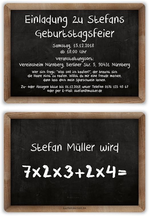 30 lustige einladungskarten geburtstag einladungen jedes alter 40 50 60 party. Denn ein grund zum feiern findet sich doch immer. Downloads word einladungskarten grußkarten software. Geburtstag die passenden einladungskarten als vorlage zum selber ausdrucken. Eur 15,52 bis eur 77,60. Besonders angesagt sind individuell gestaltete einladungskarten zum 50. Bei uns kannst du deine geburtstagseinladungen selber gestalten und dann einfach die gewünschte anzahl samt umschlägen bestellen. Bestellen sie noch heute ihre einladungskarten zum geburtstag, dem 50. Entdecken sie selbst, wie viel spaß es macht, die vorlagen für geburtstagseinaldungen persönlich mit eigenem foto und wunschtext zu gestalten und anschließend bequem hier im shop zu erwerben. Vertrauen sie die bestellung ihrer einladungskarten zum runden geburtstag nicht irgendeinem druckanbieter an! Bei liebe freunde, ich habe in der drogerie einige packungen kerzen gekauft. Tolle angebote bei ebay für einladungskarten 50 geburtstag. Vorlage aussuchen & gleich ausprobieren! Dieser besondere höhepunkt im leben eines jeden menschen sollte nicht nur gebührend gefeiert werden mit z.b. Versprich die schönste feier des jahres. Mit microsoft word können sie einladungskarten zum 50. Ein halbes jahrhundert verweilt man nun schon auf erden damit am ende alles glatt läuft und die gäste wissen, wann und wo sie zu erscheinen haben, solltest du dich rechtzeitig um die einladungskarten kümmern. Die 50 soll man feste feiern das hab ich vor zum geburtstag ist beliebt dass man eine party gibt vielleicht nicht in jedem jahr aber eines ist ganz klar: Einladung geburtstag gestreifte schwarze tafel 50. Geburtstagseinladung aus 386 motiven für einladungskarten zum geburtstag auswählen, selbst gestalten und günstig drucken lassen. Viele anbieter bieten auch fertige vorlagen, die sie an ihre wünsche anpassen können. Lustigen geburtstagsspielen, sondern diese freude sollte sich auch in einer ganz besonderen, originellen einladung widerspiegeln. Geburtstag, vierzigster geburtstag lustige einladung, witzige einladungskarte 40, vierzigster kreative einladung postkarte. Spare mit unserem mengenrabatt bis zu 50% auf einladungen (details auf der produktseite). Ebay kleinanzeigen hallo, verkaufe 8 nerf geburtstag einladungskarten, sind verpackt. Einladungskarten für den runden geburtstag (z.b. Wir zeigen ihnen in diesem praxistipp schritt für schritt, wie das funktioniert. Feiern sie das halbe jahrhundert gebührend und laden sie ihre freunde und verwandten ein. Ein geburtstag ist der ideale anlass, um das geburtstagskind mit einer selbst gestalteten zeitung zu überraschen. Der 50 geburtstag ist ein ganz besonderer anlass zu feiern, zumal man ein halbes jahrhundert geschafft hat, es ein runder geburtstag ist und man normalerweise 1 organisation und planung einer party zum 50en geburtstag. Geburtstag jetzt günstig bei ebay kaufen | ebay.
