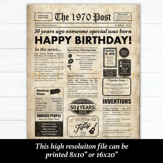 1970 Geburtstag Zeitung Usa Geburtstag Party Poster Druckbare Geburtstag Poster Lustige F Geburtstag Poster Vater Geburtstag 50 Geburtstag Lustig