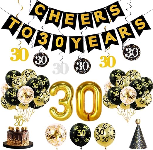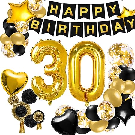 Intvn 30 Geburtstag Dekoration Set Alles Gute Zum Geburtstag Banner Konsait Gold Schwarz Silber Deko 30 Geburtstag Swirl Spiralen Girlanden Zum Aufhangen Zahl Amazon De Kuche Haushalt