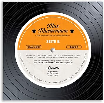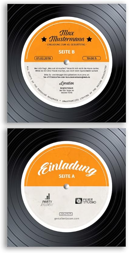 Einladung Als Schallplatte Oder Plattencover Drucken Pixel Kiste Kartendesign. Geburtstag die passenden einladungskarten als vorlage zum selber ausdrucken. Sie sind wieder sehr schön geworden und kamen auch bei den eingeladenen sehr gut an. Begehen sie ihn angemessen, indem sie eine große feier veranstalten und lieben menschen einladen. Geburtstag ab 1,19 euro online bestellen. Startseite > geburtstagskarten > einladung runder geburtstag > einladungskarten 50. Schnelle lieferung musterkarten gratis geprüfte qualität. Versenden sie die personalisierten karte schallplatte an ihre freunde und verwandten. Es gibt altersmarken, die für jeden, der sie erreicht, eine besondere bedeutung haben. Viele vorlagen eigene fotos und texte gratis versand. Ohne software im kartenkonfigurator die einladungen einfach online erstellen und drucken lassen. Sprüche für einladungskarten zum 50. Ein geburtstag ist der ideale anlass, um das geburtstagskind mit einer selbst gestalteten zeitung zu überraschen. Eur 15,52 bis eur 77,60. Damit die gäste einer geplanten geburtstagssause bereits beim auspacken der geburtstagseinladung vor vorfreude platzen, findet man hier alles, um die perfekte einladung für einen 50. Home»einladung 50 geburtstag»einladungskarten geburtstag 50»einladungskarten geburtstag 50 schallplatte.