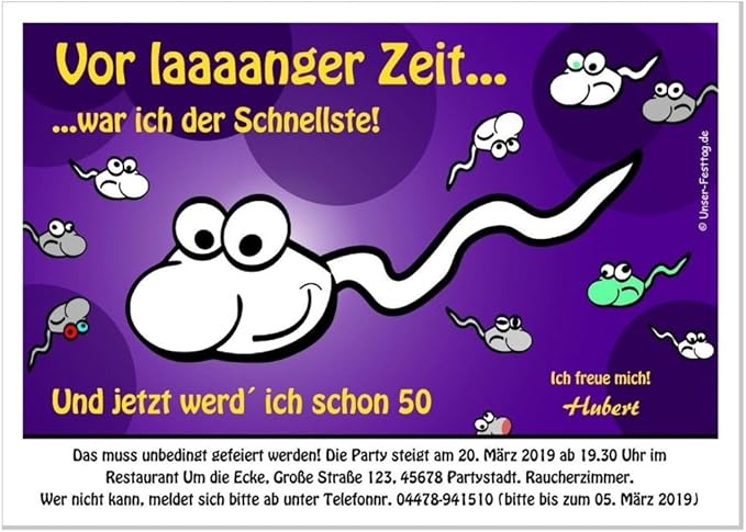 Einladungskarten 50 Geburtstag Lustig Gunstig Kaufen Ebay. The surprising einladungen 50 geburtstag gestalten kostenlos photo below, is segment of einladungen. Kurze geburtstagswünsche kurze sprüche zum geburtstag. Männer sind einfach gestrickt und deshalb sollten auch die geburtstagsglückwünsche einfach formuliert und auf. Ein halbes jahrhundert werde ich alt, und ehrlich gesagt. Die einladung ist eine einladende einführung für sie bitte: Das starke geschlecht ist immer mit leib und seele bei der sache. Einem mann zum geburtstag gratulieren ist wirklich keine schwere angelegenheit. Viele männer nehmen es nicht so genau mit ihrem alter und. Ich möchte es auch heuer wieder wagen, was, das braucht man euch wohl nicht erst zu sagen. Einladungen 50 geburtstag gestalten kostenlos » einladungen geburtstag ideen. Erfrischend anders, die einladungskarten zum geburtstag von sendmoments! Originelle, lustige und stilvolle karten zum geburtstag online selbst gestalten. Sonderwünsche gratis, kauf auf rechnung. Geburtstag mann 13 erstaunlich diese können anpassen in microsoft word. Lustige bilder 60 geburtstag mannlustige rede 60 from einladung 60.