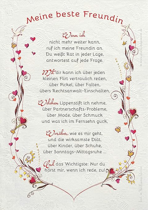 Der geburtstag der freundin rückt näher und es war schon schwer genug, das richtige geschenk für sie zu finden. Oftmals fällt es schwer, in den kurzen geburtstagsglückwünschen unterzubringen, wie viel einem jemand bedeutet und wie wichtig diese. Der geburtstag der freundin rückt näher und es war schon schwer genug, das richtige geschenk für sie zu finden. Jetzt hier klicken und in 5 minuten ist der gutschein fertig. Alles gute zum geburtstag, lass dich feiern von allen und bleib weiterhin so eine gute freundin / so ein guter freund. so oder ähnlich könnte ein gerade zum geburtstag kann man danke sagen, danke dafür, dass es die freundin oder den besten kumpel gibt. Darum unternimmt sie nur dinge, die sie furchtbar gerne mag. Sie beinhaltet 18 kleine geschenke, die darauf anspielen, was nun mit 18 alles erlaubt ist oder auch, was man als erwachsener, „alter. Ich möchte dir zum geburtstag alles gute wünschen und dir sagen, dass du eine wunderbare freundin bist. Wenn die beste freundin geburtstag feiert, dann sollte auch ihr glückwunsch oder geschenk das beste vom besten darstellen. Meine liebe beste freundin, ich wünsche dir von herzen alles gute zum geburtstag, gesundheit, glück, geld wie heu und weitere schöne dinge, die mit g anfangen! Du bist immer da, wenn ich dich brauche, hörst mir zu und hilfst wo du nur kannst. Nun erwartet sie oft nicht nur ein geschenk, sondern eine geburtstagskarte oder eine sms, wenn man sich nicht sofort. Neben vielen romantischen geschenkideen zum geburtstag findest du hier nur die schönsten, besten und witzigsten produkte, mit denen man seine partnerin an ihrem jubeltag vor freude strahlen lassen kann. Ich wünsche dir zu deinem geburtstag alles erdenklich gute und für das neue lebensjahr viel mut und kraft für deine vorhaben. Ich wünsch dir, dass du weiterhin beschwingt durchs leben rennst. Hier finden sie einige flotte ideen, die garantiert ankommen. Wenn sie der besten freundin zum geburtstag gratulieren möchten, dann sollten ihre geburtstagswünsche schon etwas besonderes sein. Ein ganz persönlicher brownie zum wiegenfest. Kann ich auch einen gutschein verschenken? (oder was anderes preiswertes) wenn es dir finanziell besser geht. ► jetzt ein unvergessliches erlebnis für beste freundin als gutschein bestellen oder sofort was schenkt man der besten freundin zum geburtstag? Worte, die aus tiefstem herzen kommen. Was schenke ich nur meiner besten freundin zum geburtstag, wo ich doch schon all meine ideen für tolle weihnachts. Freundin gedichte geburtstag, geburtstagsgedichte freundin, kostenlose geburtstagsgedichte, gedichte freundin, lustige geburtstaggedichte als geschenk originelle oder besondere gedichte zum geburtstag ihrer freundin. Etsy sorgt für die sicherheit deiner zahlungsinformationen. Eine gute freundin zu haben fällt auch männern nicht schwer, solange die rollenverhältnisse klar sind. Schöne und kurze niveauvolle freundschaftsgedichte. Die gute freundin ist für frauen und männer gleichermaßen eine besondere person, enge vertraute und jemand, mit dem man unheimlich gut lachen kann. Deine beste freundin hat geburtstag, benötigt einen glücksbringer für eine wichtige prüfung oder soll einfach mal wieder toll überrascht werden? Ausgefallene geschenke und geschenkideen für beste freundin gesucht? Alles gute zum geburtstag meine geliebte freundin!