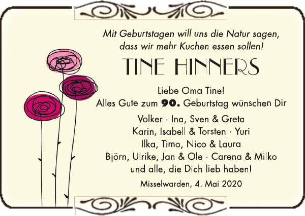 Liebe Oma Tine Alles Gute Zum 90 Geburtstag Viel Gluck Nordsee Zeitung