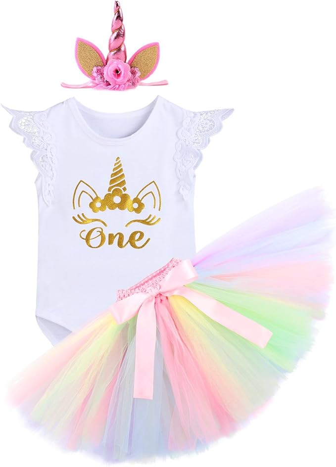 Iwemek Baby Madchen Einhorn Geburtstag Kostum Kleinkinder 1 Geburtstag Outfit Neugeborenen Prinzessin Strampler Body Regenbogen Tutu Rock Einhorn Stirnband 3tlg Bekleidungssets Fur Fotografie Amazon De Bekleidung