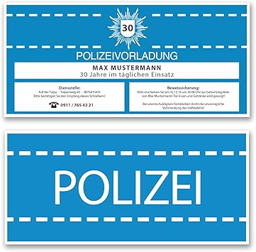 Einladungskarten Polizei 6 Stk Amazon De Spielzeug. Erfrischend anders, die einladungskarten zum geburtstag von sendmoments! Den zuckerguss erst kurz vor der feier auftragen! Dieses portal bietet ihnen über die angebotenen links den zugang zu den informationsangeboten ihrer polizei. Fertige einladungskarten kann man kaufen, aber sie sind auch ganz schnell selbst gemacht. Originelle, lustige und stilvolle karten zum geburtstag online selbst gestalten. Wir haben die besten texte für geburtstagseinladungen zusammengestellt. Insbesondere bei einem runden geburtstag empfiehlt es sich, die einladung persönlich zu denn schließlich ist ein runder geburtstag immer ein ganz besonderes ereignis, worauf sie ihre gäste mit. Finden sie ihren einladungstext für geburtstage! Danach könnt ihr die einladungen zum polizei kindergeburtstag gestalten. Denn schließlich bildet die einladung zu deinem runden geburtstag den meilenstein für ein wundervolles fest, das jeden geladenen gast in erinnerung bleibt. Wer gut malen kann, der malt. Alles für die perfekte polizei mottoparty: Internetauftritte der polizeien der länder und des bundes. Dafür musst du nicht im. Die einladungen haben wir passend zum motto der feier gestaltet, auf fotopapier achtung: