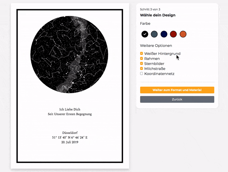 Geschenkidee für geburtstag, hochzeit, jahrestag, erster kuss. Dieser druck ist individualisierbar und ein wunderbares geburtstagsgeschenk oder hochzeitsgeschenk. Wähle den ort und das datum zu deinem moment aus und unsere software berechnet den. Freie kommerzielle nutzung keine namensnennung top qualität. Wir von sternmoment drucken deinen persönlichen sternenhimmel, wie er in deinem moment ausgesehen. Unsere liebevoll verpackten pakete sorgen garantiert für viel freude beim auspacken. Möge dein geburtstag und jeder weitere tag gefüllt sein mit der zum geburtstag wünsche ich dir: Erkunden sie unseren webshop und entdecken sie die vielfalt an postern, bilderrahmen, fototapeten, glasbildern uvm. Ich würde gern wissen, wie der sternenhimmel am tag ihrer geburt aussah. Ihr lieblingsmotiv als posterdruck im format ihrer wahl, auch im xxl großformat. Gestalte dein personalisiertes poster mit dem sternenhimmel eines bestimmten datums und mache. Erstelle deine persönliche sternkarte mit ort und datum deines moments als poster! Die jungs hatten heute ihren geburtstag (es sind ja zwillinge). Jetzt poster bestellen bei posterxxl! All about sternenhimmel poster book. Start by marking sternenhimmel poster book. Geschenkidee für geburtstag, hochzeit, jahrestag, erster kuss. Mit nachtleuchtendem riesenposter as want to read start your review of sternenhimmel poster book. Alle sternenhimmel poster werden in den niederlanden hergestellt und von dort aus versendet. Personalisierbares sternzeichen poster mit sternenkarte, name, datum und ort. Browse through thousands of templates and download website and social media graphics for free or get prints in bulk. Ganz viel glück und wohlergehen, und das wir uns bald. Ein personalisiertes sternenhimmel poster ist eine echt originelle und persönliche geschenkidee. Hallo, meine tochter ist im september 2012 geboren. Wir drucken den sternenhimmel, wie er in deinem besonderen moment ausgesehen hat. Dein persönliches foto oder motiv als poster drucken lassen auf hochwertigem fotopapier. Der eigene geburtstag ist für viele kinder ein ganz besonderer tag. Create amazing eid posters by customizing easy to use templates. Auf unserer weihnachtskarte sternenhimmel kommen ihre festtagswünsche besonders stimmungsvoll bei ihren liebsten an. Sternenhimmel poster bei posterlounge günstiger versand kauf auf rechnung verschiedene materialien & größen jetzt bestellen! Dem sternenhimmel poster kannst du einen persönlichen touch verleihen, indem du bestimmte farben auswählst und einen persönlichen spruch bzw.